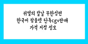 귀멸의 칼날 무한성편 한국어 팜플렛 단독cgv판매 가격 지점 정보에 대해서 자세하게 알려 드리겠습니다. 귀멸의 칼날 무한성편 한국어 팜플렛 판매 가격 판매가격은 권당15000원이며 1인당 최대8권이하까지만 구매가능합니다. 귀멸의 칼날 무한성편 한국어 팜플렛 …