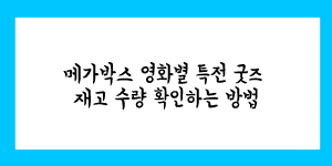 메가박스 영화별 특전 굿즈 재고 수량 확인하는 방법에 대해서 알려드리겠습니다. 메가박스는 다른 영화사에 비해서 굿즈 수량이 많이 적은 편이기 때문에, 정말 원하는 굿즈가 있다면 , 수시로 확인하는 걸 추천합니다. 메가박스 …