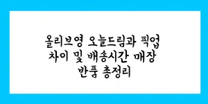 올리브영 오늘드림과 픽업 차이 및 배송시간 매장 반품 총정리해서 알려드리겠습니다. 간혹 오늘드림과 픽업을 헷갈려해서 손해 보시는 분들이 꽤 있어서 정확하게 차이점에 대해서 정리해 드릴려고 합니다. 올리브영 오늘드림 픽업 차이점 올리브영에서 …