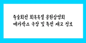 주술회전 회옥옥절 응원상영회 메가박스 극장 및 특전 재고 정보에 대해서 알려 드리겠습니다. 응원상영회는 이틀만 진행되기 때문에, 특전을 받고 싶으시면 미리 빨리 예약하시는 걸 추천합니다. 주술회전 회옥옥절 응원상영회 기간 2025년 11월 …