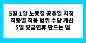 5월 1일 노동절 공휴일 지정 직종별 적용 범위 수당 계산 5일 황금연휴 만드는 법