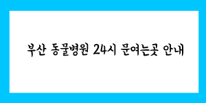 부산 동물병원 24시 문여는 곳 안내 해 드리겠습니다. 부산에 사시는 분들 중에 반려 동물을 키우는 많은 분들이 계실 겁니다. 현재 본인의 반려 동물이 아무리 건강하다고 하더라도, 근처에 야간 진료가 가능한 …