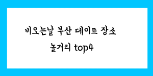 비오는날 부산 데이트 장소 놀거리 top4에 대해서 알려 드리겠습니다. 비오는 날 데이트는 생각보다 쉽지가 않습니다. 보통 실내에서 자주 놀기 때문에, 실내 위주로 선정했습니다. 주차장 정보도 포함해서 알려 드리겠습니다. 비오는날 부산 …