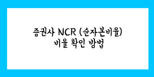 증권사 NCR (순자본비율) 비율 확인 방법에 대해서 알아보도록 하겠습니다. 증권사 또한 주식의 제무재표를 공부하는 것처럼 순자본비율도 제대로 미리 확인해 두시는 게 매우 중요합니다. 순자본비율(NCR) 뜻 순자본비율(NCR, Net Capital Ratio)은 증권사의 …