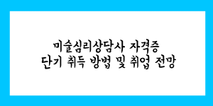 미술심리상담사 자격증 단기 취득 방법 및 취업 전망에 대해서 설명해 드리겠습니다. 미술심리상담사 자격증은 취업을 하는 데도 도움이 상당히 많이 되는 자격증 종류중의 하나 입니다. 또한, 자격증 과정이 그렇게 오래 걸리지 …