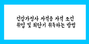 건강가정사 자격증 자격 조건 취업 및 최단기 취득하는 방법에 대해서 설명해 드리겠습니다. 건강가정사는 의외로 많은 사람들이 잘 모르는 자격증이기도 합니다. 건강가정사의 경우에는 사회복지사2급과 겹치는 과목이 상당히 많기 때문에, 건강가정사와 사회복지사2급 …