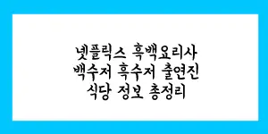 넷플릭스 흑백요리사 백수저 흑수저 출연진 식당 정보 총정리