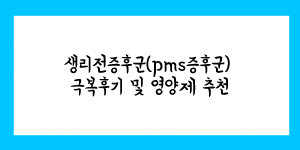 생리전증후군(pms증후군) 극복후기 및 영양제 추천을 해 드릴려고 합니다. 저는 어릴 때 부터 매우 오랜 시간 동안 생리통과 설사를 반복했는데, 살면서 처음으로 설사와 생리통이 없던 적은 최근 이였습니다. 원래 저는 방광염과 …