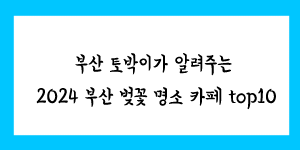 2024 부산 벚꽃 명소 top10을 알려 드리겠습니다. 부산 토박이 이기 때문에, 흔하지 않은 벚꽃 명소와 벚꽃 포토존을 촬영하면 사진이 잘 나오고 이쁜 곳 위주로 선정 했습니다. 저 또한, 매년 다른 …