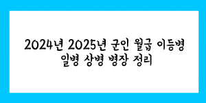 2024년 2025년 군인 월급 이등병 일병 상병 병장 정리해서 알려 드리겠습니다. 어느덧 2023년이 끝나고, 청료의 해가 되었습니다. 군인 월급은 얼마나 올랐을지 궁금하신 분들도 많을 거 같다는 생각도 듭니다. 2024년 계급별 …