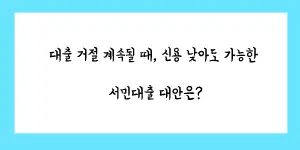 대출 거절 계속될 때, 신용 낮아도 가능한 서민대출 대안에 대해서 설명해 드리겠습니다. 대출을 여러 번 거절당하면 막막함과 불안함이 커질 수밖에 없습니다. 특히 신용점수가 낮거나 소득이 불안정한 경우라면, 일반 은행 대출은 …
