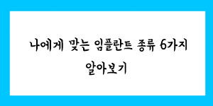 임플란트의 종류6가지 정리해 드리겠습니다. 임플란트의 종류도 정말 다양하게 있지만, 오늘은 그 중에서 대표적으로 알려져 있는 6가지 임플란트에 대해서 설명해 드리겠습니다. 각각 본인의 치아에 맞는 임플란트도 따로 있기 때문에, 미리 알아 …